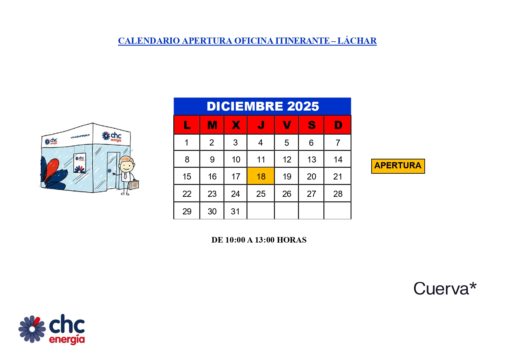 OFICINA MOVIL DE LA EMPRESA DE SUMINISTRO ELÉCTRICO "CHC" EN LACHAR EL PRÓXIMO DÍA 18 DE DICIEMBRE