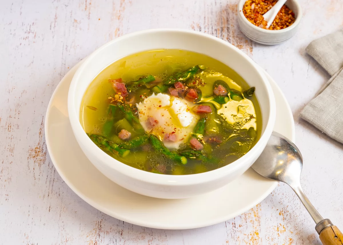 Sopa que usa esparragos como su ingrediente principal.